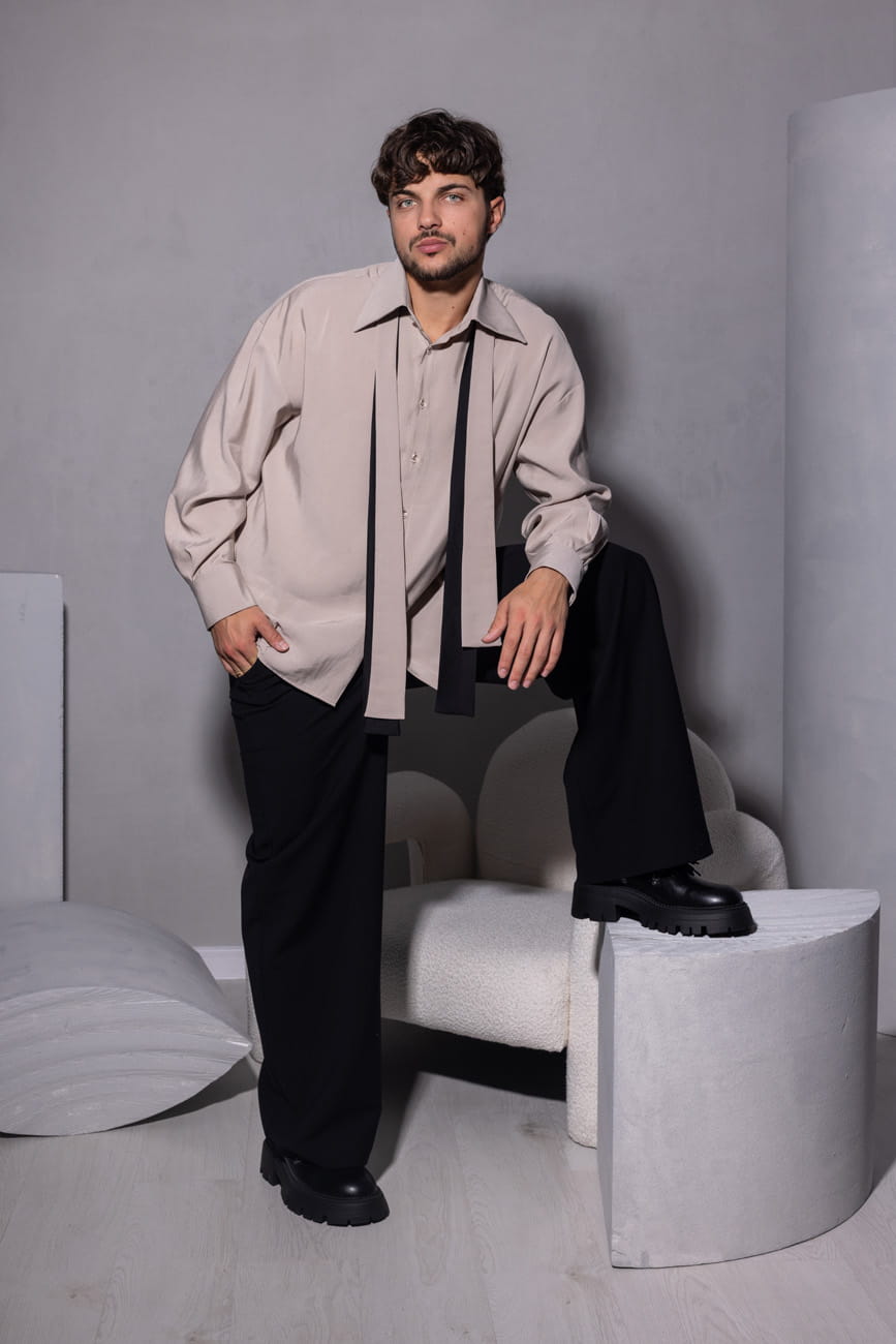 Spodnie idealnie komponują się z oversize’ową marynarką z tej samej kolekcji, tworząc nowoczesny, minimalistyczny garnitur o nonszalanckim wyrazie. Można je również zestawić z koszulami z naszej kolekcji lub t-shirtem, w zależności od okazji.