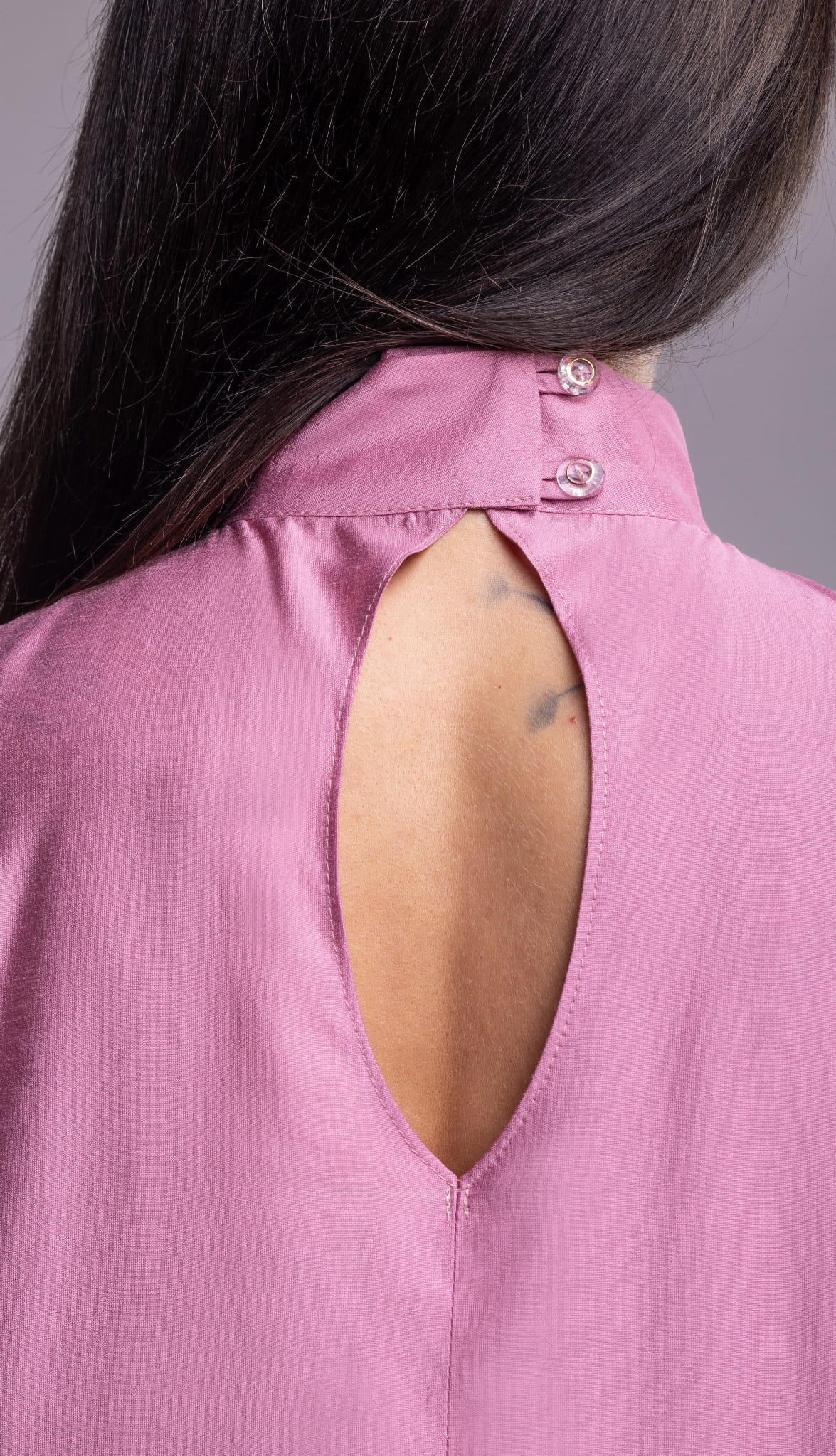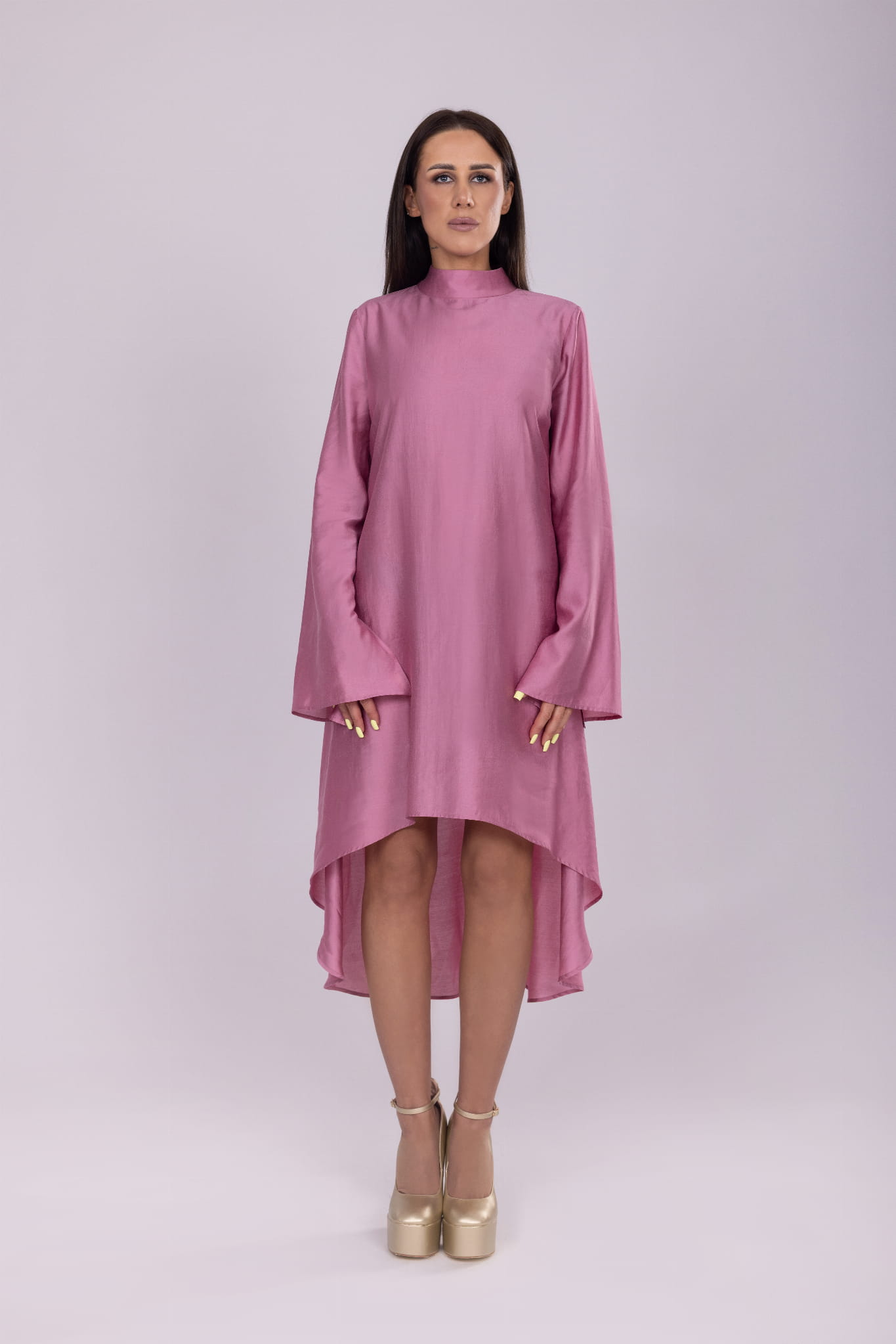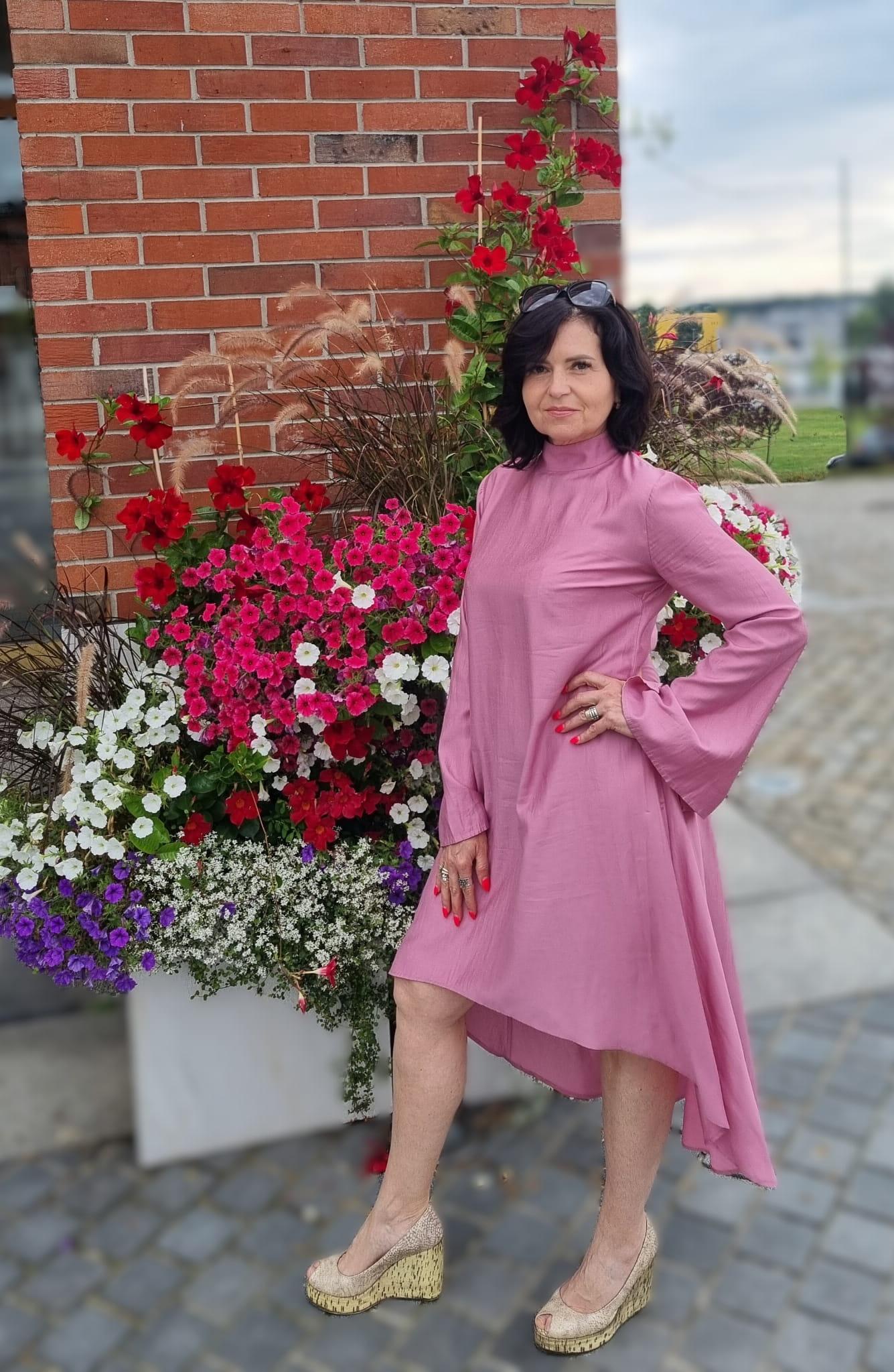 Tunika Rosegold w kolorze delikatnego brudnego różu z satynowym połyskiem to propozycja dla tych, którzy lubią połączenie klasyki i nowoczesnego sznytu. Minimalistyczna stójka podkreśla szyję i dodaje konstrukcyjnej elegancji, a szerokie, wydłużone rękawy z rozcięciami tworzą lekkość w ruchu i nieoczywisty detal. Wydłużony tył płynnie układa się na sylwetce, dodając tunice charakteru i nonszalanckiej elegancji. To projekt, który sprawdzi się solo lub jako warstwa – dla kobiet, które lubią tworzyć swój własny rytm stylu.