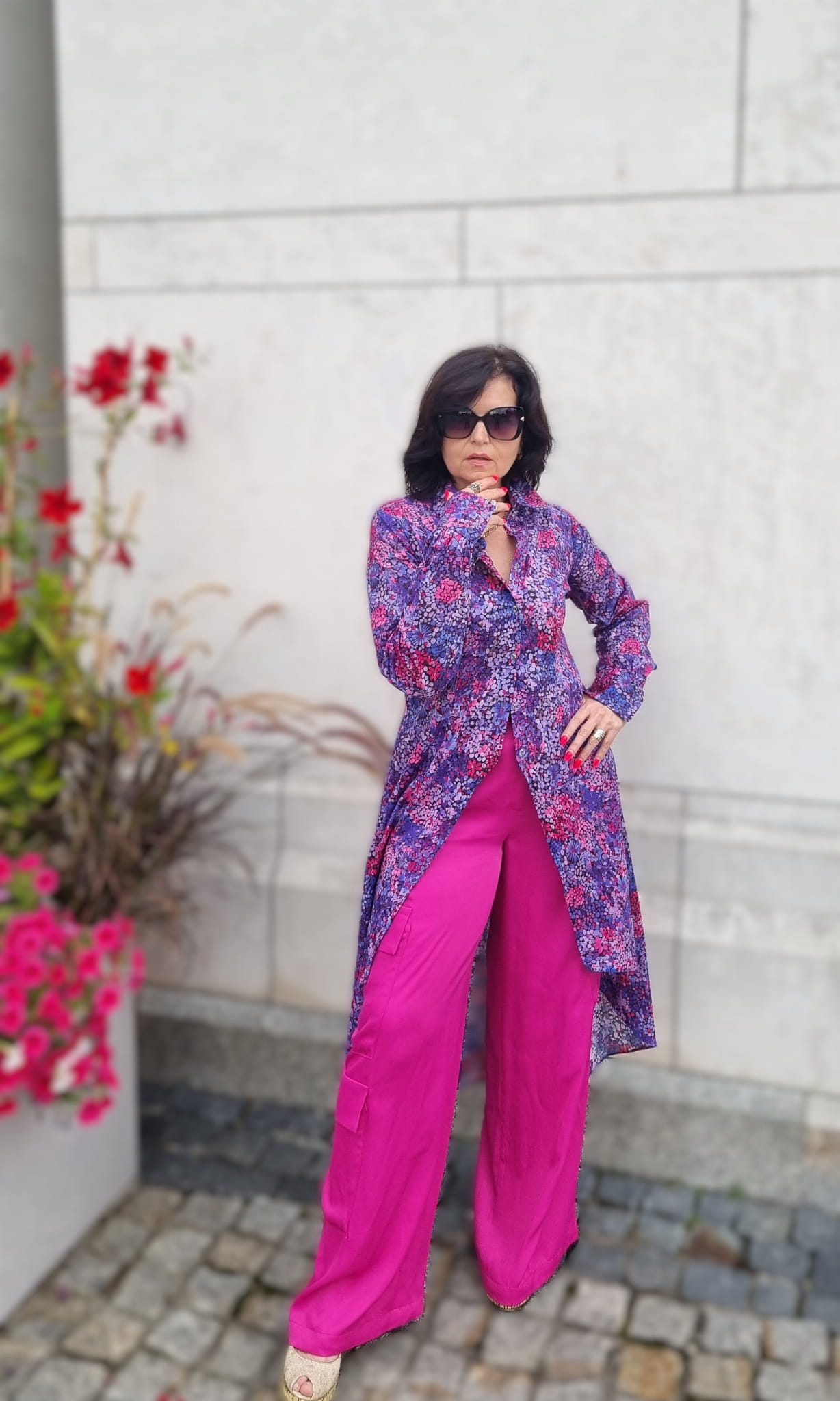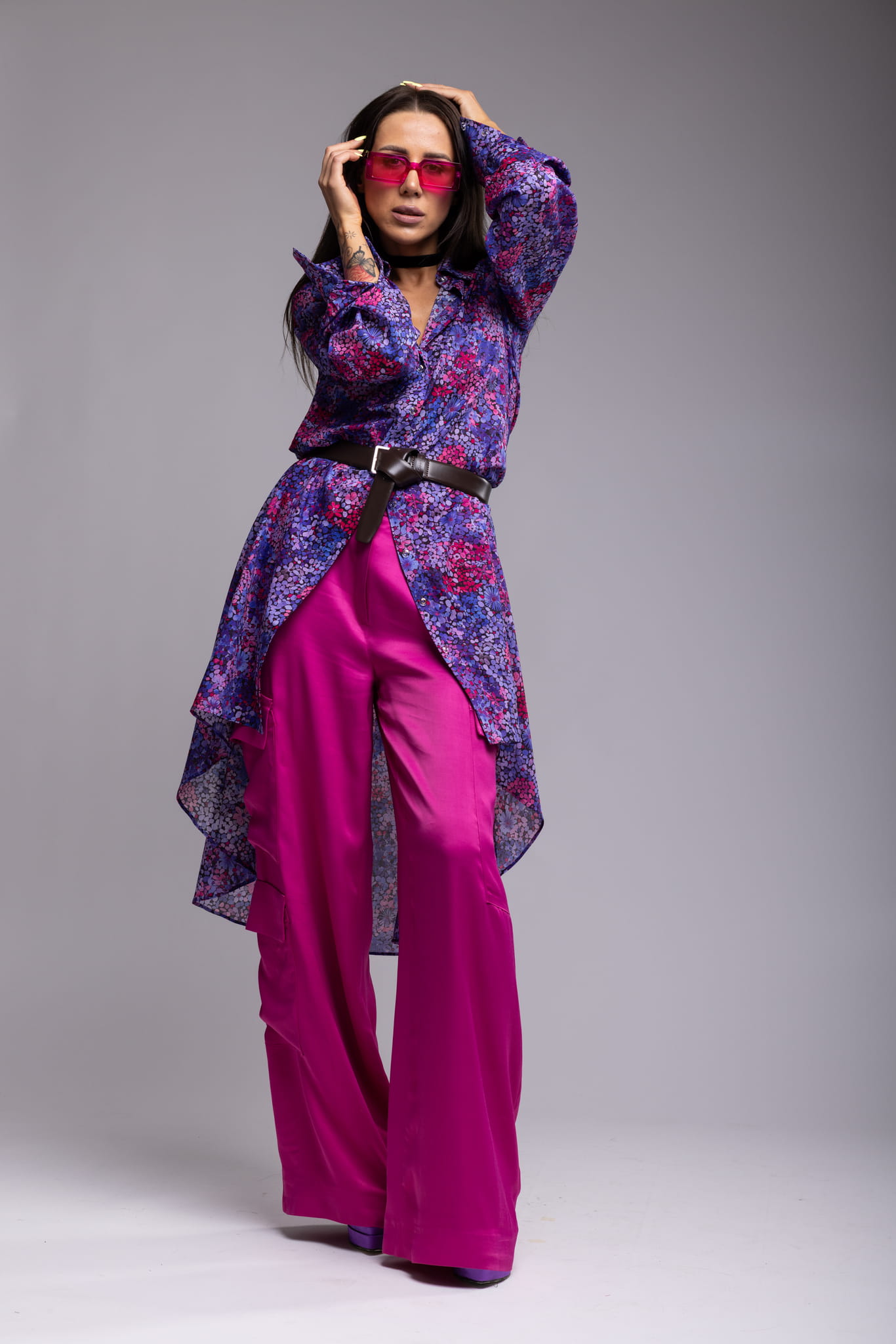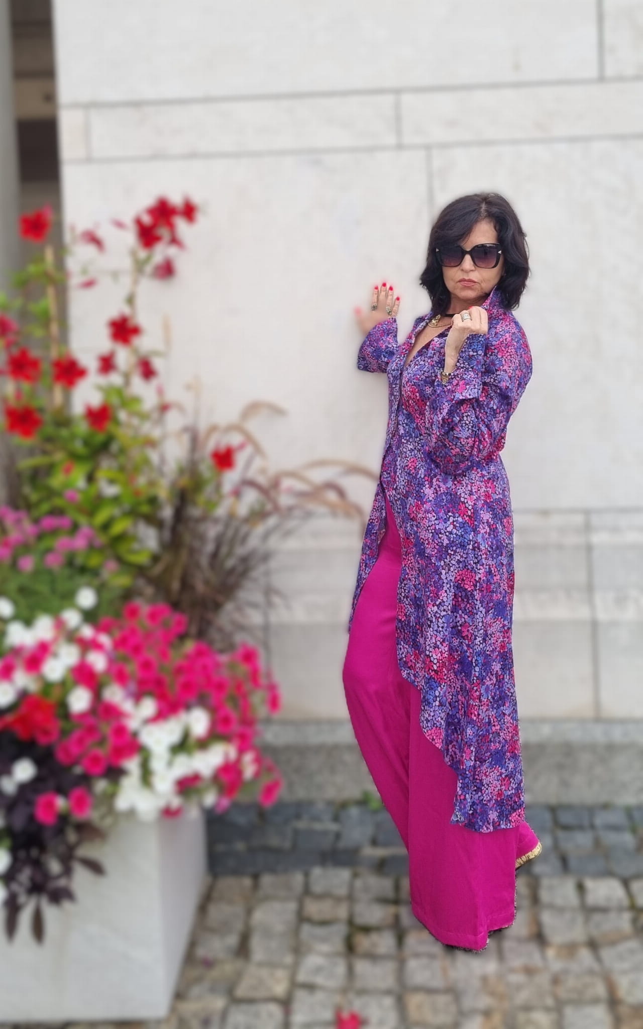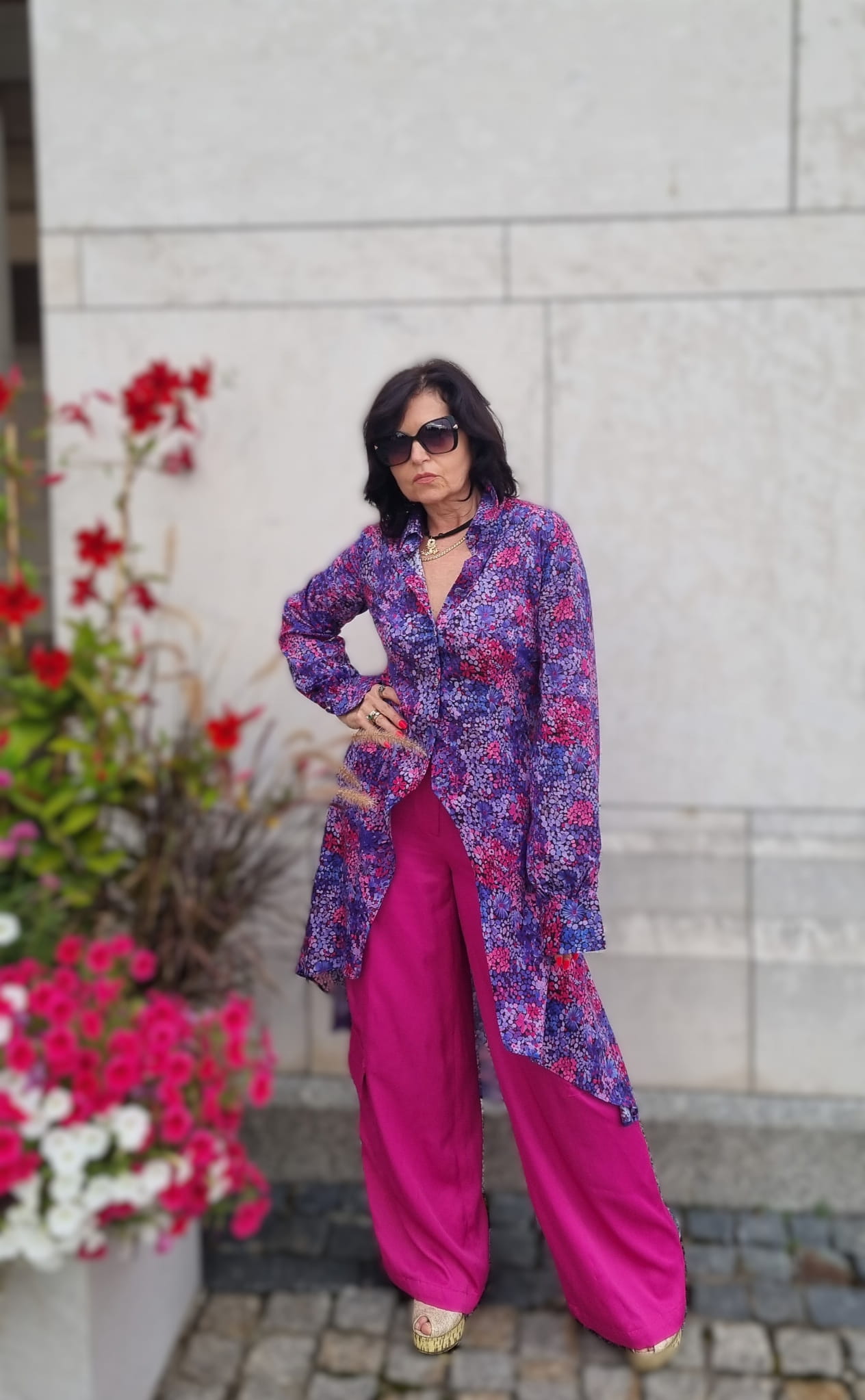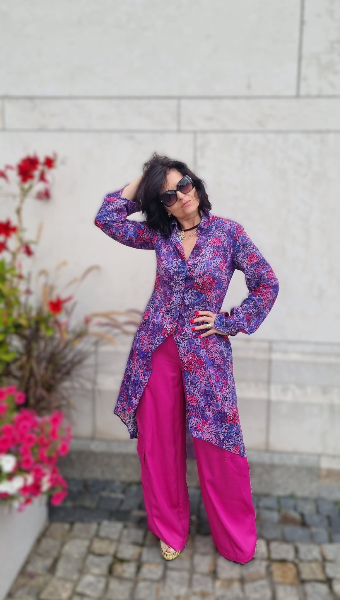 W tej koszuli nie przejdziesz po ulicy nie zauważona. Violet Bloom to długa, kobieca koszula, uszyta z lekkiej, półtransparentnej bawełny, otula sylwetkę niczym powietrze – subtelnie, miękko, naturalnie. Luźniejszy krój, krótki przód zapinany do pasa na guziki i długi tył sprawia, że jest niepowtarzalna – koszula wygląda świetnie zarówno solo, jak i z paskiem, podkreślając talię. Dopracowana w każdym szczególe: przezroczyste guziki stapiają się z tkaniną, szerokie mankiety i klasyczny kołnierzyk dodają lekko boho, ale wciąż ponadczasowego charakteru.