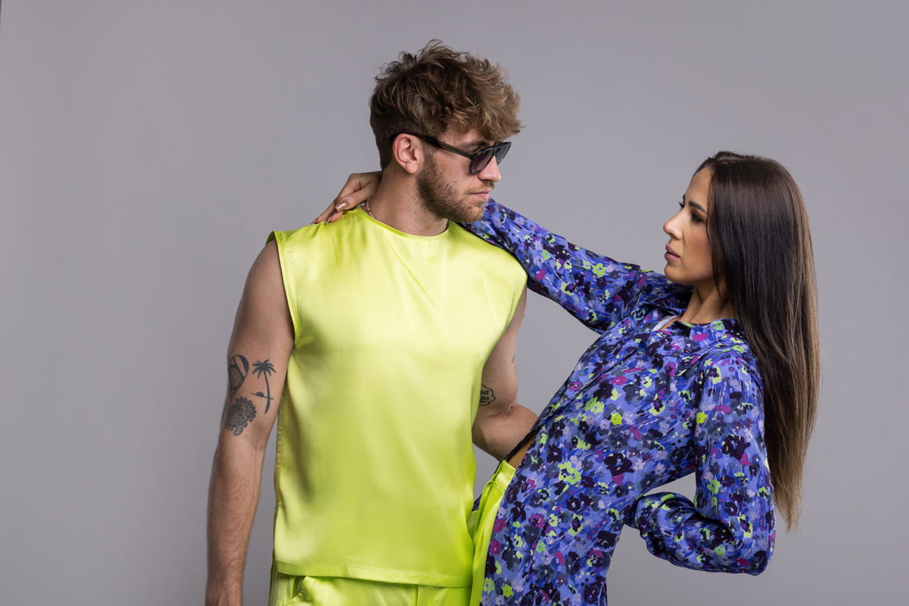 Projektując top Neon Ray, chcieliśmy dać mężczyznom coś więcej niż klasyczną koszulkę. To ubranie, które mówi: „widzę siebie – i nie boję się być widziany”. Stworzyliśmy formę surową i dopracowaną jednocześnie. Dla tych, którzy cenią styl z charakterem i wygodę z nutą nieoczywistości. Wykonany ze 100% wiskozy – chłodnej w dotyku, przewiewnej i pięknie układającej się na ciele – gwarantuje wygodę nawet w najbardziej upalne dni. Kolor neonowego seledynu nawiązuje do miejskiej energii i śmiałości. Najlepiej wygląda w duecie z naszymi spodniami – seledynowe dla wyrazistego efektu lub czarnymi dla kontrastowej, graficznej stylizacji.