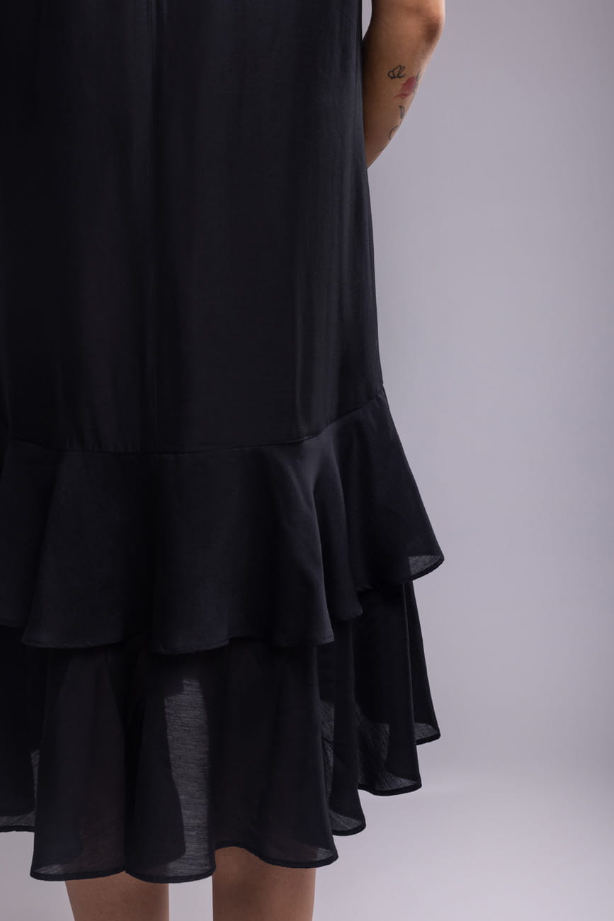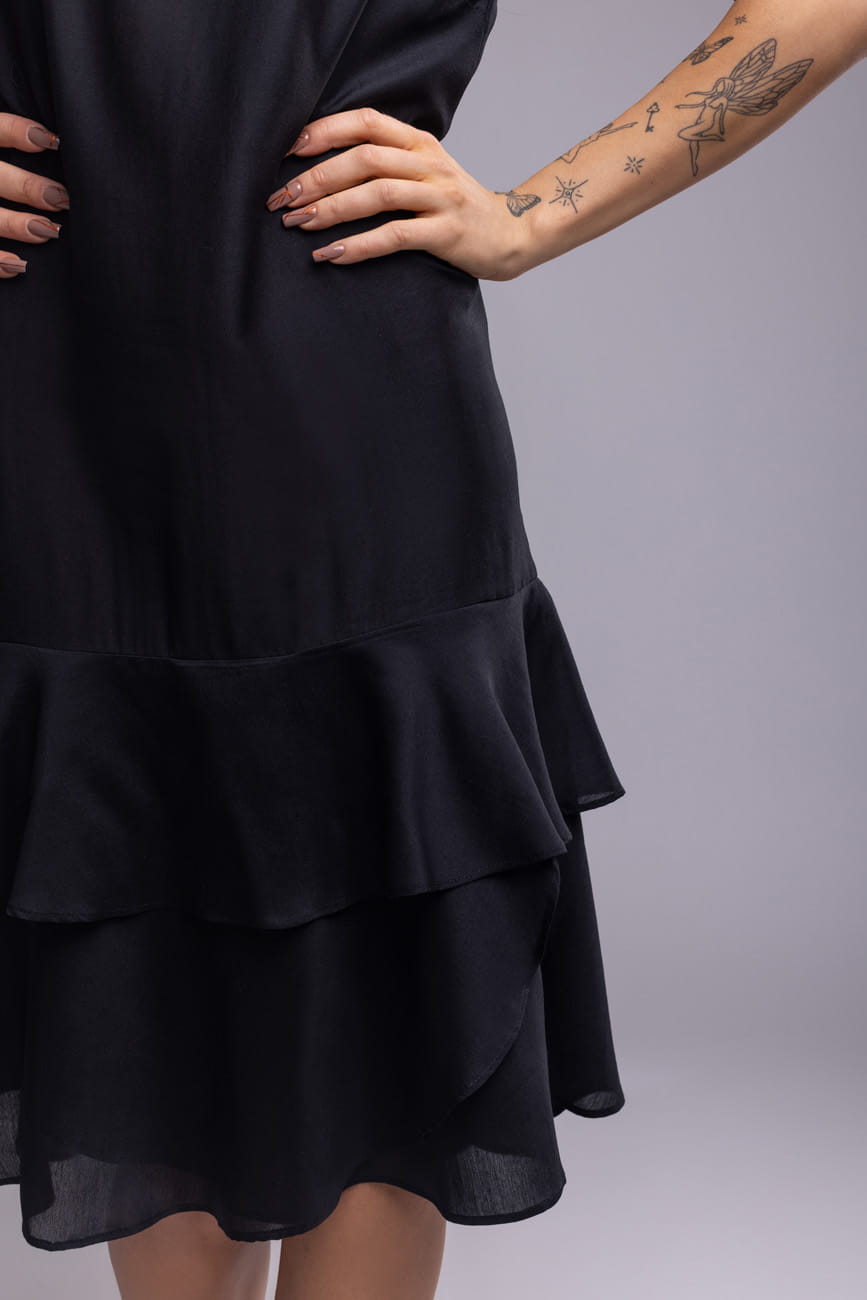 Sukienka bez rękawów Dark Mist - czarna, z falbanami, prosty krój, lyocell