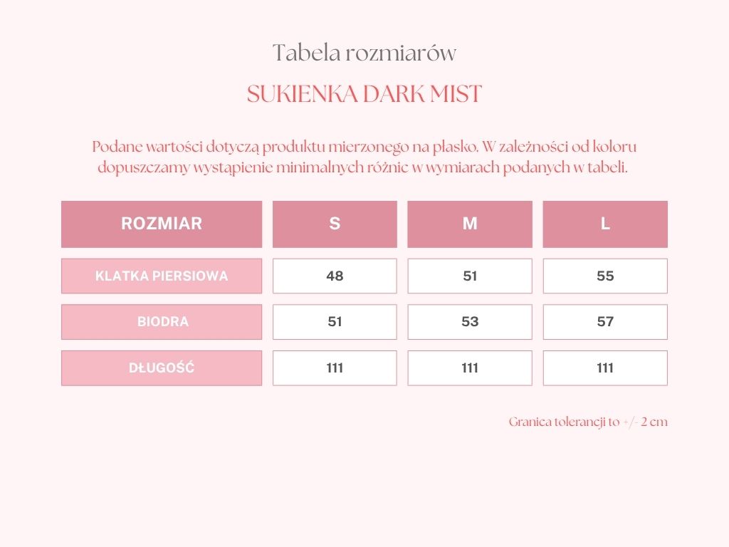 Projektując Dark Mist, myślleliśmy o ruchu – o tym, jak sukienka powinna towarzyszyć kobiecie, a nie ją ograniczać. Zależało nam na kroju, który podkreśli kobiecą sylwetkę, ale zostawi przestrzeń na swobodę. Falbany szyte z koła to nasz ukłon w stronę lekkości i radości w modzie – bo elegancja może mieć w sobie nutę tańca. Zastosowałyśmy lyocell – tkaninę, która oddycha, delikatnie otula ciało i pięknie układa się w ruchu. Stworzyłyśmy tę sukienkę dla kobiet, które lubią być sobą – z klasą, lekkością i odrobiną tajemnicy.