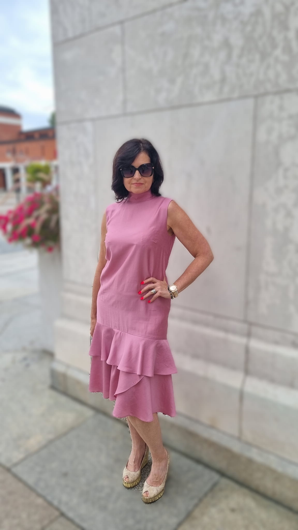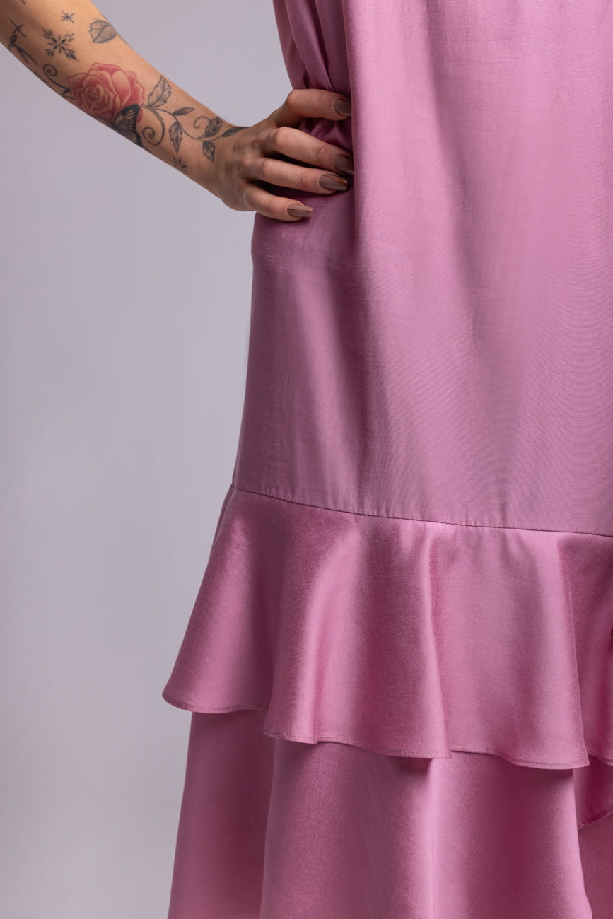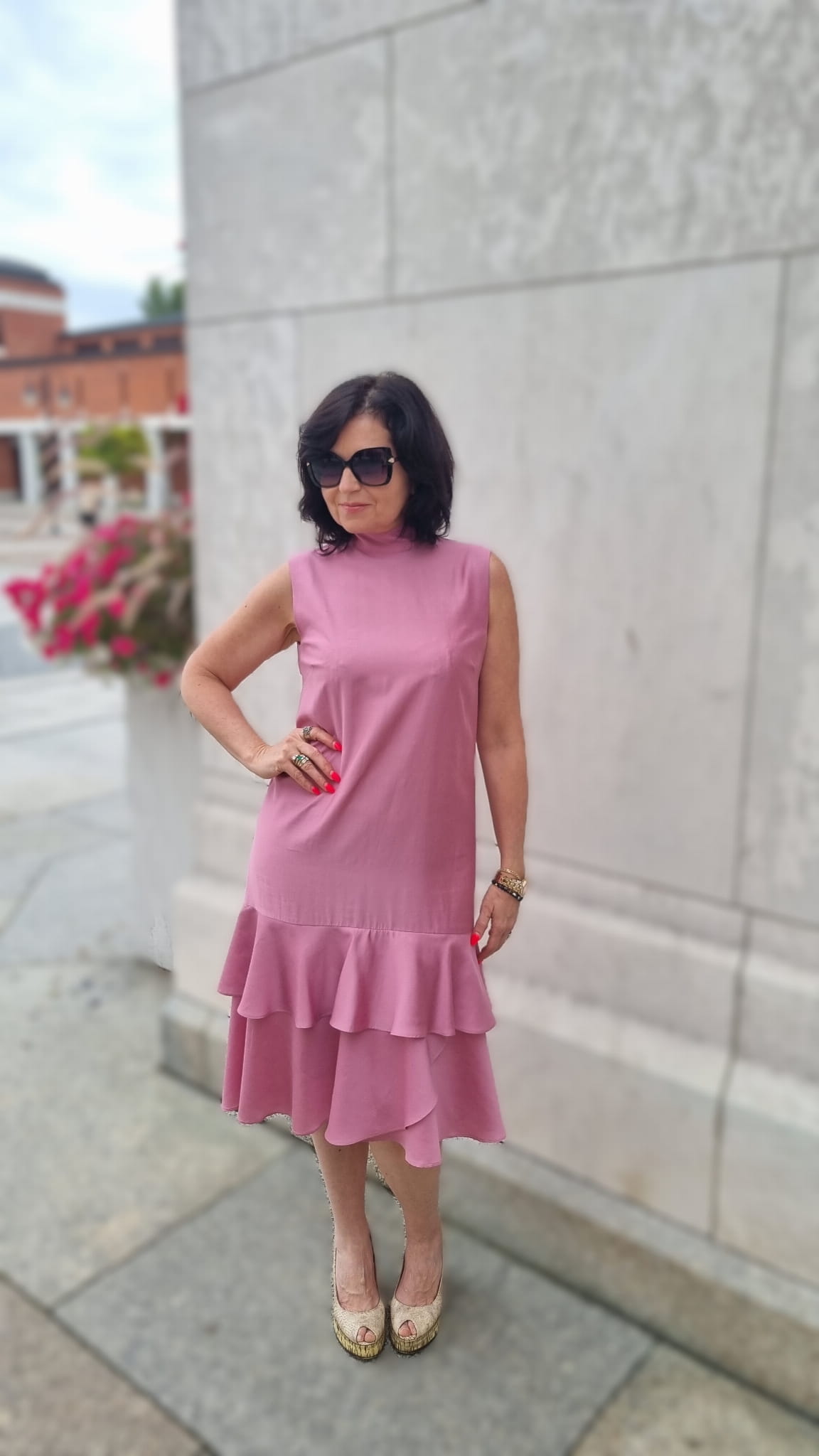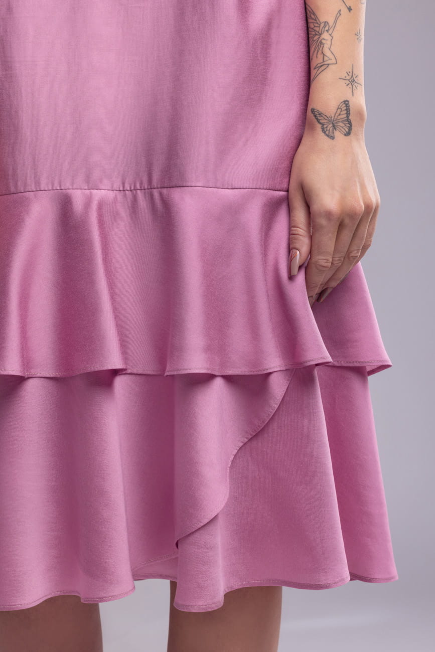 Sukienka bez rękawów Rose Dust – brudny róż, z falbanami, prosty krój, lyocell