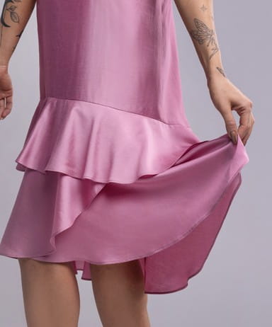 Rose Dust to sukienka, która łączy ducha lat 20. z nowoczesnym komfortem. Jej prosty, lekko rozszerzany krój i dwie subtelne falbany tworzą sylwetkę pełną wdzięku i lekkości. Dzięki szlachetnemu lyocellowi sukienka jest miękka w dotyku, oddychająca i delikatnie połyskująca. Wystarczy dodać korale lub szeroki pas, by przenieść się do świata retro elegancji.